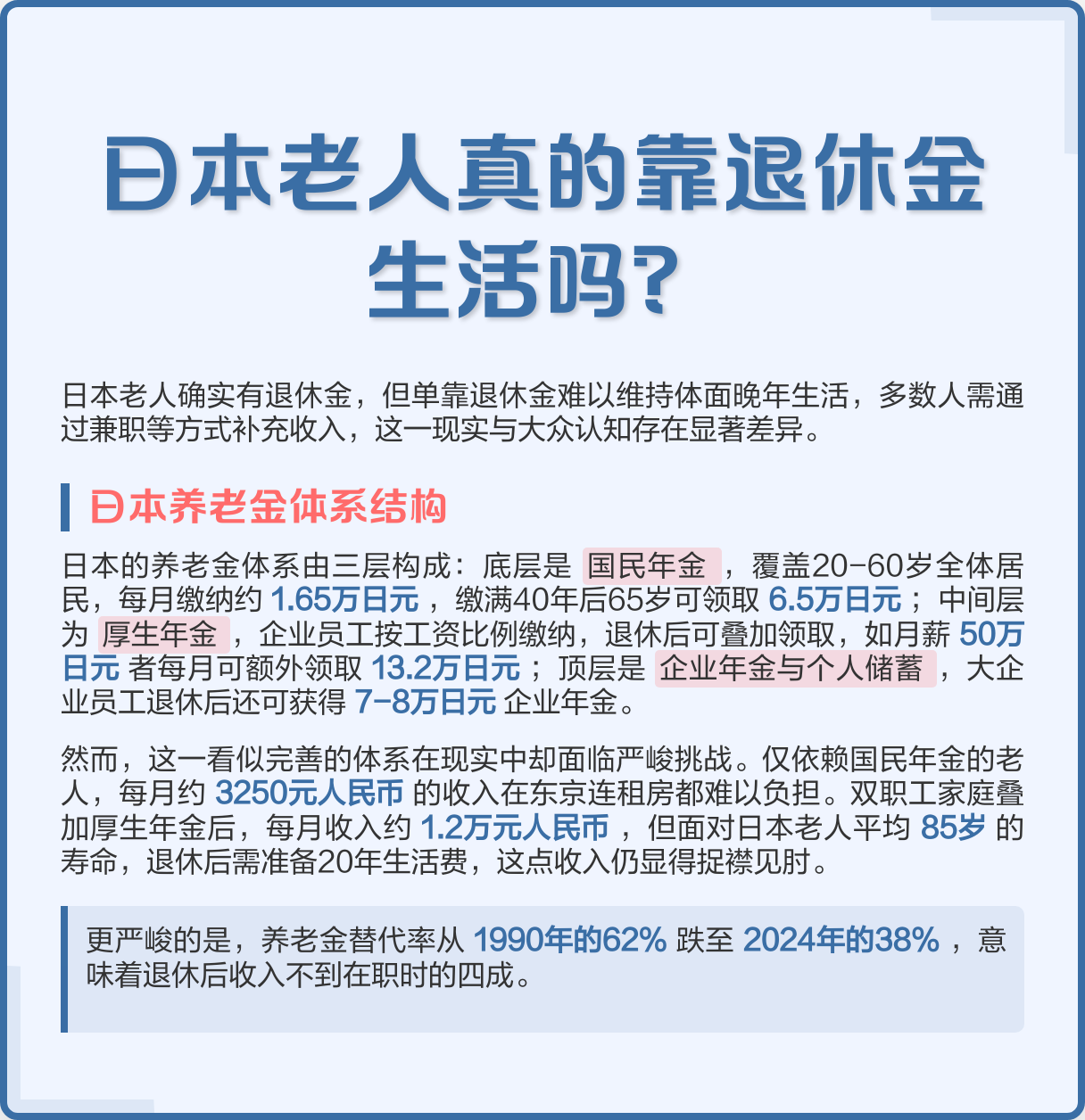 这场争论提醒人们:老龄化社会里,养老不只是“退休后的事”,而是一套贯穿一生的安排。个人层面,越早规划越能降低不确定性;公共层面,越透明、越可预期的制度,越能稳住社会预期。日本的选择或许会成为许多国家未来不得不面对的一道题。